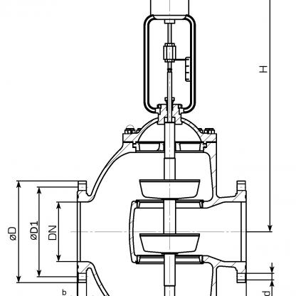 Клапан регулирующий с МИМ МЗ 65233 25с40нж (НО), 25с42нж (НЗ), 25нж40бк (НО), 25нж42бк (НЗ) DN 50 - 300 PN 40